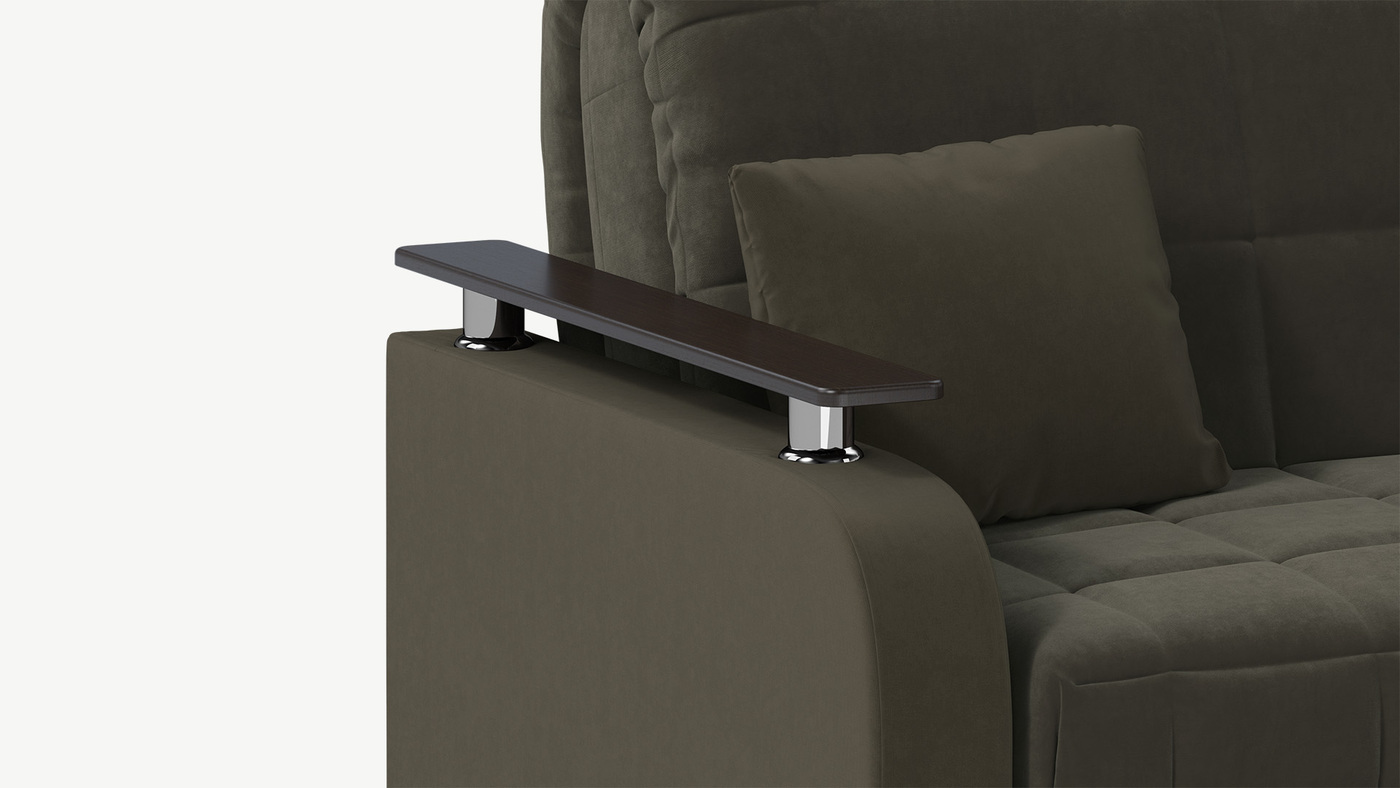 Кресло-кровать с декоромКресло-кровать MOON FAMILY 044 украшено уютной стежкой в квадрат. Гладкая фактура подлокотников и стежка — эффектный визуальный контраст, добавляющий дизайну привлекательности. Проверенный временем дизайн с приподнятой над уровнем подлокотников столешницей создает пространство, в котором хочется проводить как можно больше времени.