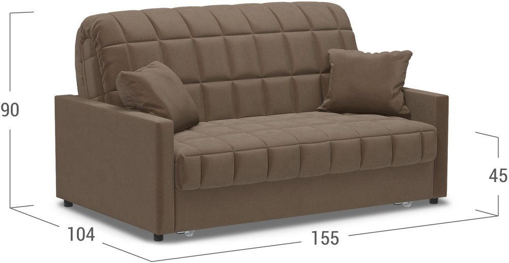 - При минимальных габаритах диван обладает отличным спальным местом.