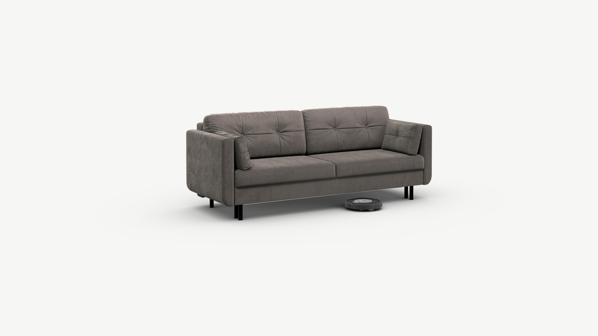 Благодаря высоким конусовидным опорам под диваном проходит робот-пылесос и легко проводится влажная уборка, что обеспечивает чистоту и порядок в доме. Цвет опор подбирается дизайнерами с учетом фактуры и цвета обивочного материала, а также последних модных тенденций.
