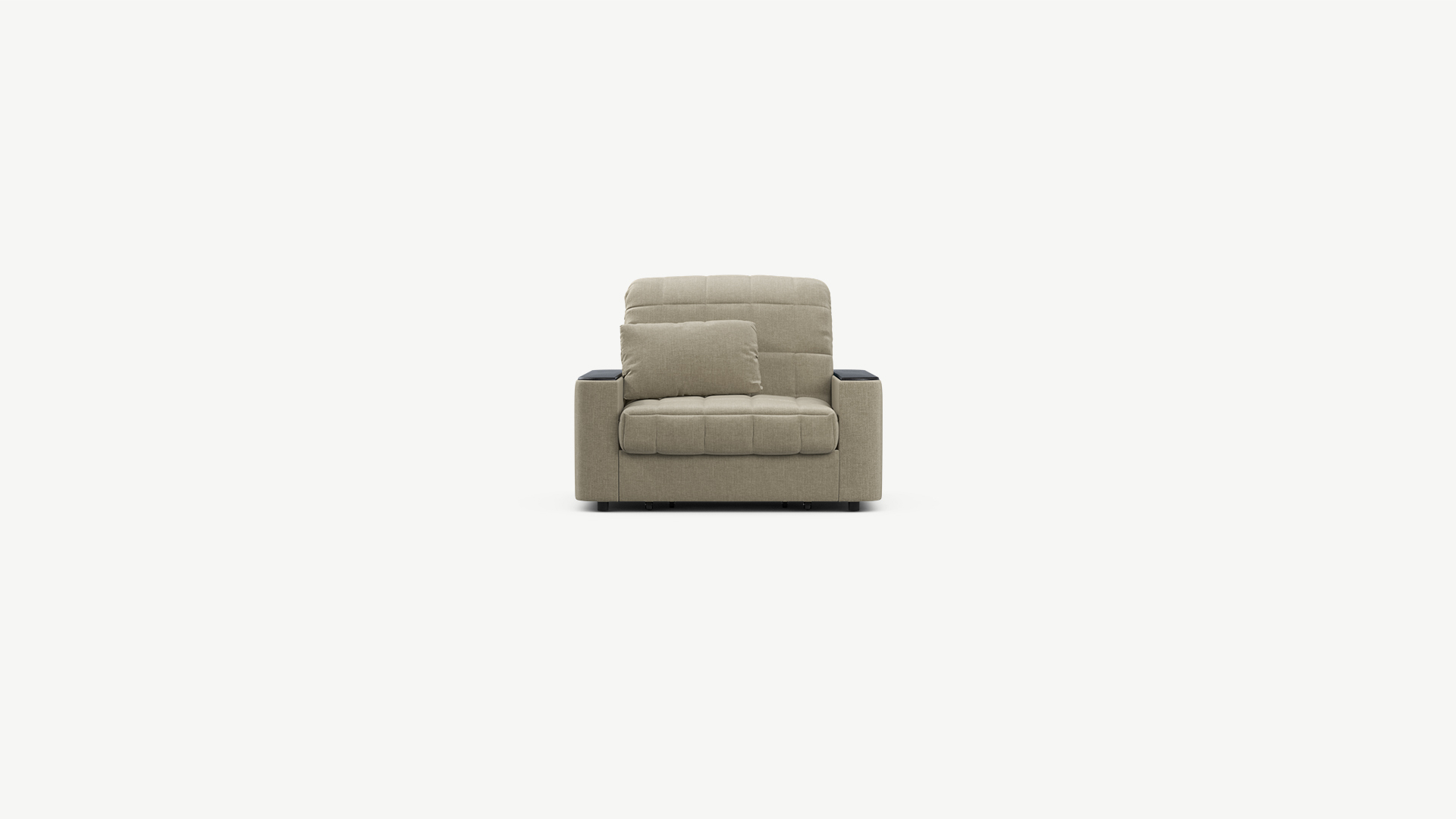 Кресло-кровать MOON FAMILY 018 украшено стежкой в квадрат. Проверенный временем дизайн производит впечатление уютного и надежного пространства. На объемные прямоугольные подлокотники с широкой столешницей удобно положить книгу и пульт, телефон или планшет, а также поставить чашечку чая.