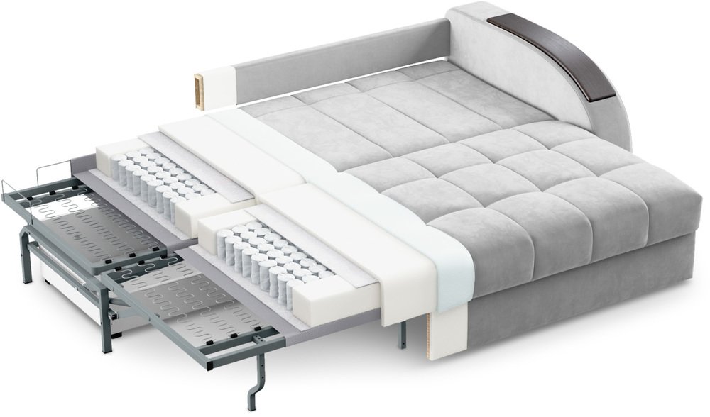 • Механизм трансформации — Пантограф (Тик-так). Сиденье и откидная спинка образуют двуспальное место. Сиденье мягко приподнимается и встаёт на опоры, на освобожденное пространство горизонтально опускается мягкая спинка дивана.