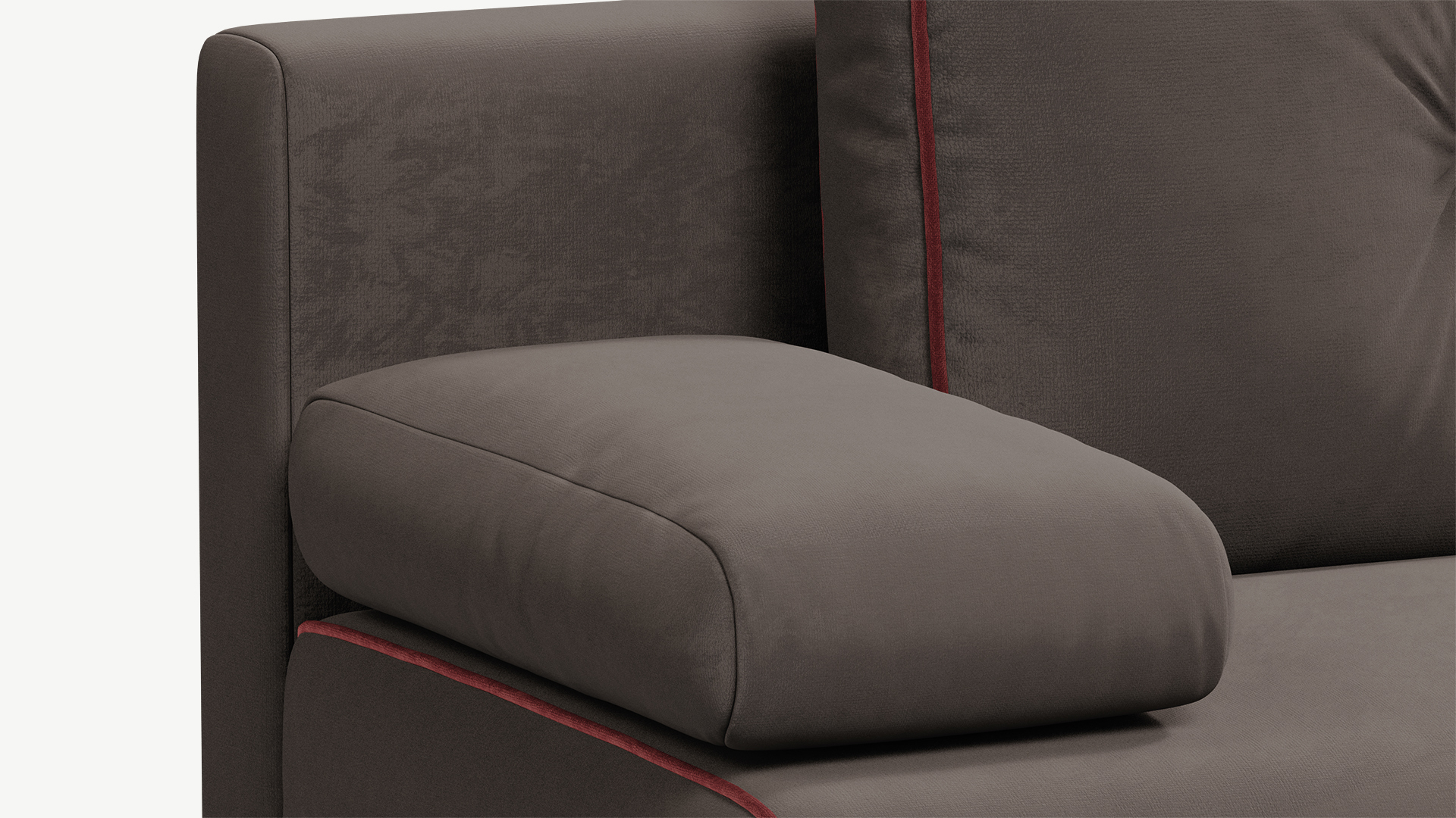 Контрастный кант, украшающий «срезы» на корпусе и приспинных подушках MOON FAMILY 043, лишь усиливает визуальную идентичность элементов, поддерживая эффект наборности.