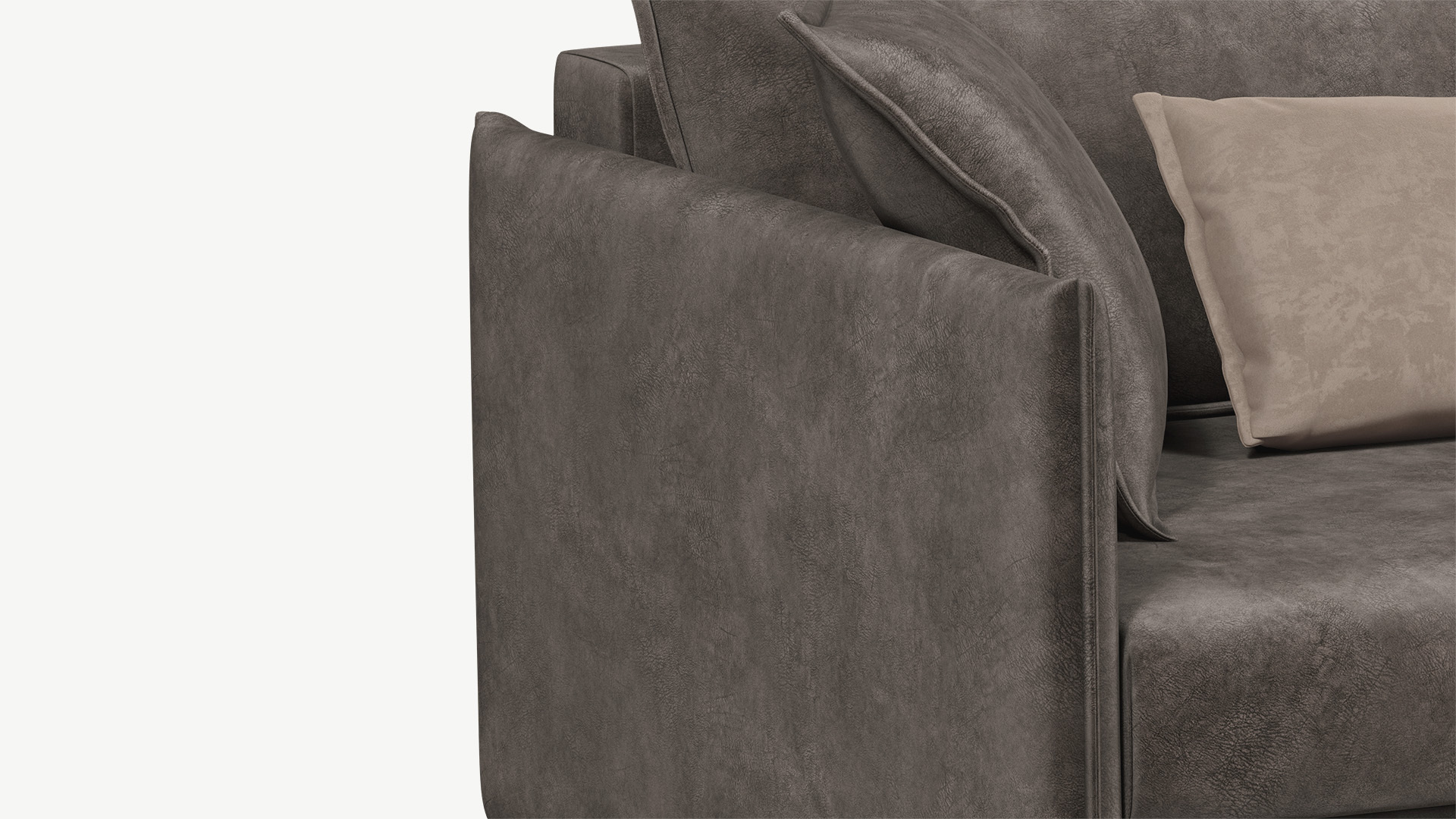 Декоративный кант, проходящий по подлокотникам, подушкам спинки и декоративным подушкам, подчеркивает роскошь форм, усиливая эстетику образа.