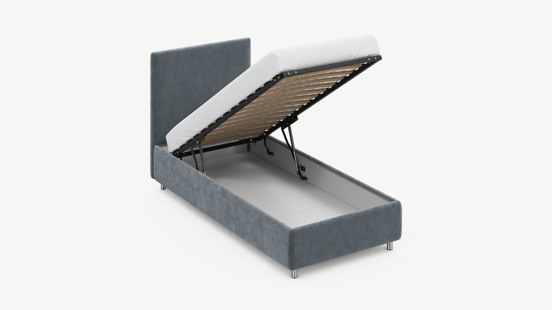 • Скрытая под основанием вместительная емкость без внутренних перегородок позволяет использовать всю площадь подкроватного пространства для хранения вещей.