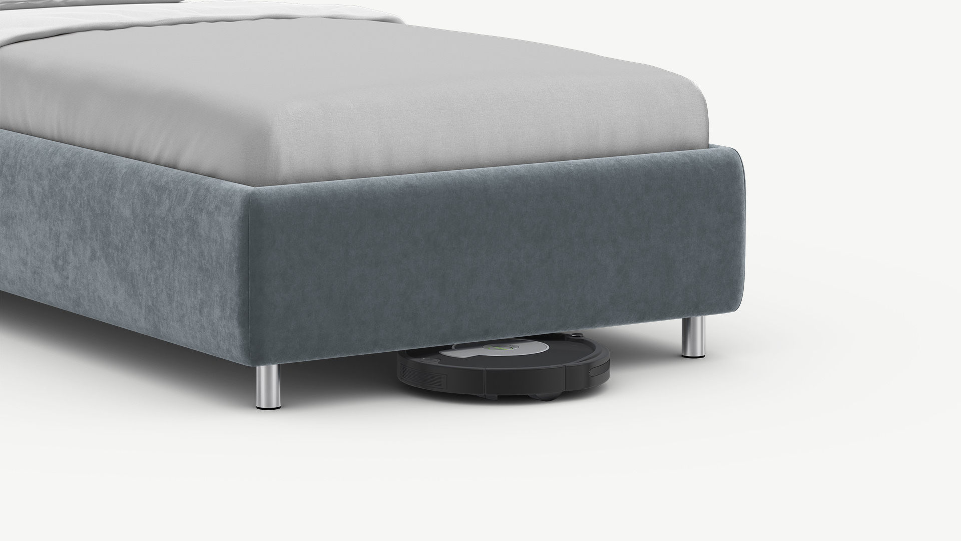 Металлические опоры создают над полом достаточный просвет для движения робота-пылесоса, что помогает поддерживать чистоту и порядок в доме.