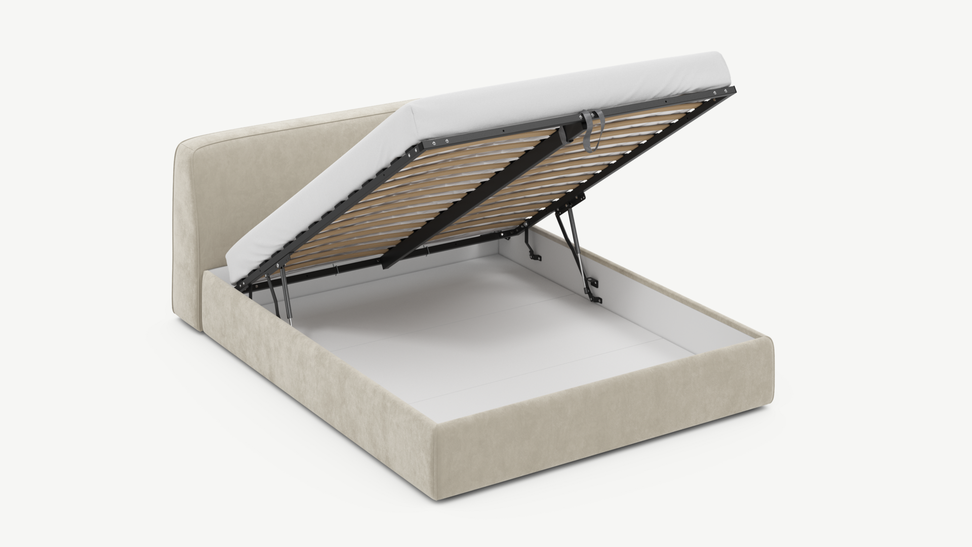 • Скрытая под основанием вместительная емкость без внутренних перегородок позволяет использовать всю площадь подкроватного пространства для хранения вещей.