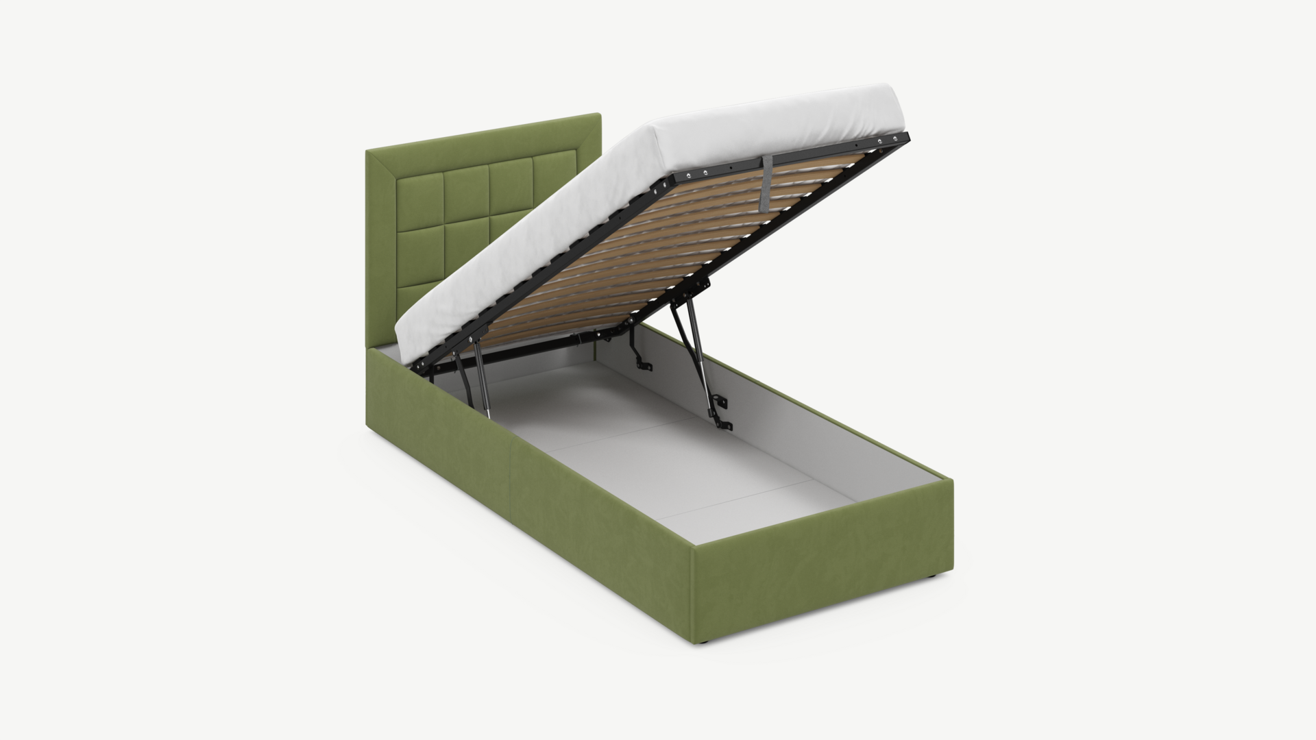 Регулируемый подъемный механизм с газовыми амортизаторами позволяет плавно и бесшумно поднимать и опускать спальное место.