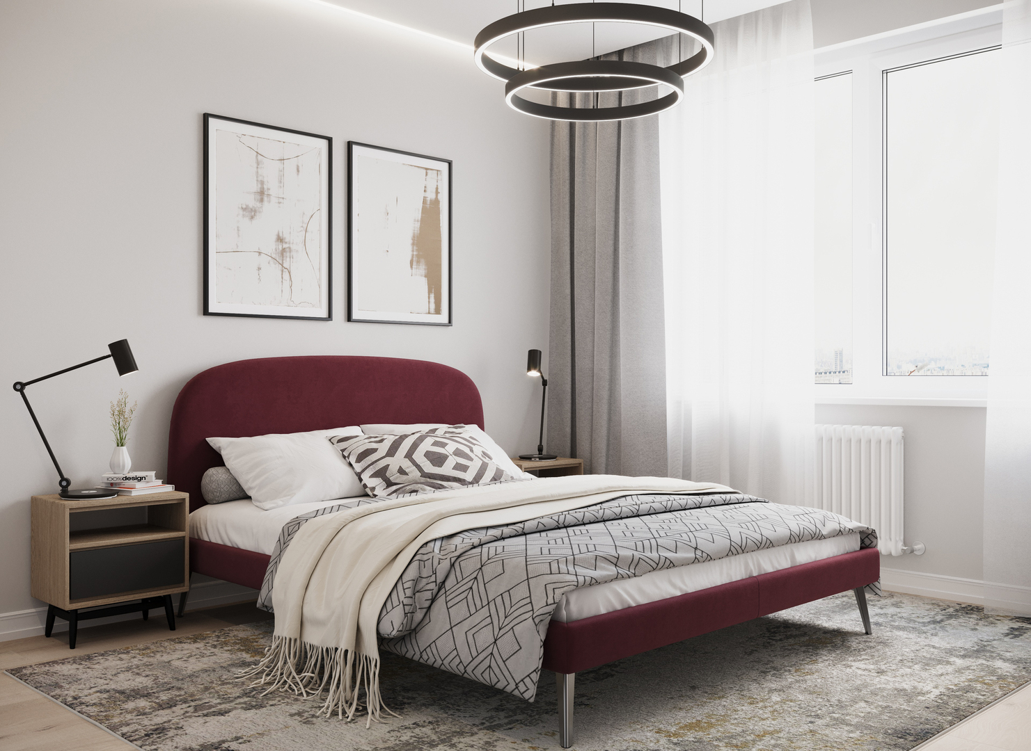 Создать гармоничный интерьер и завершить образ спальни помогут дополнительные аксессуары, например: тумбы, банкетки, подушки.