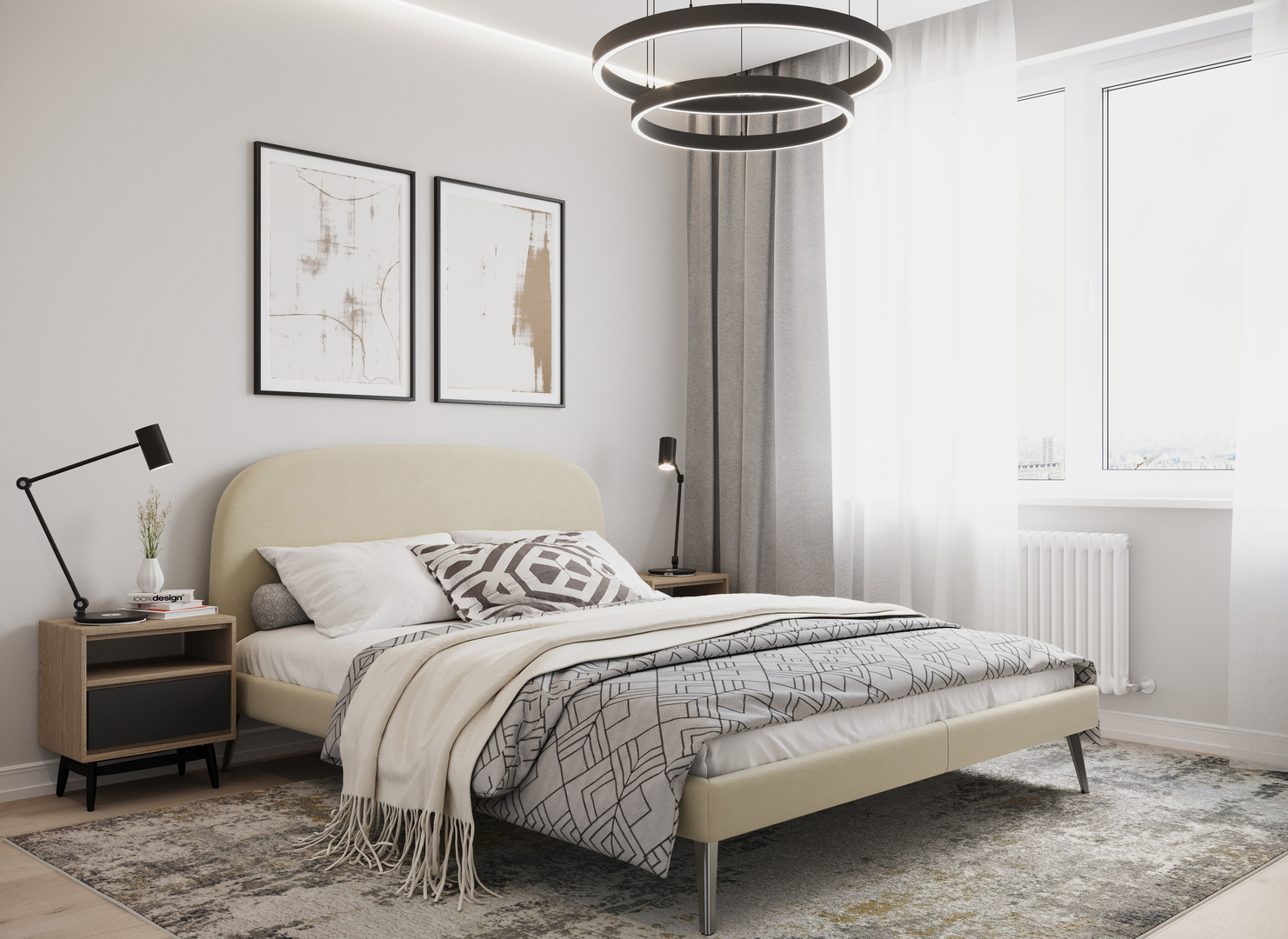 Создать гармоничный интерьер и завершить образ спальни помогут дополнительные аксессуары, например: тумбы, банкетки, подушки.