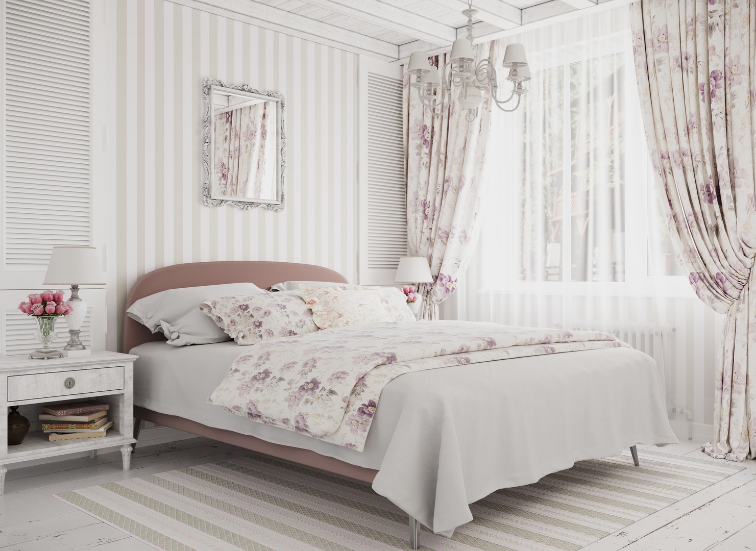 Создать гармоничный интерьер и завершить образ спальни помогут дополнительные аксессуары, например: тумбы, банкетки, подушки.