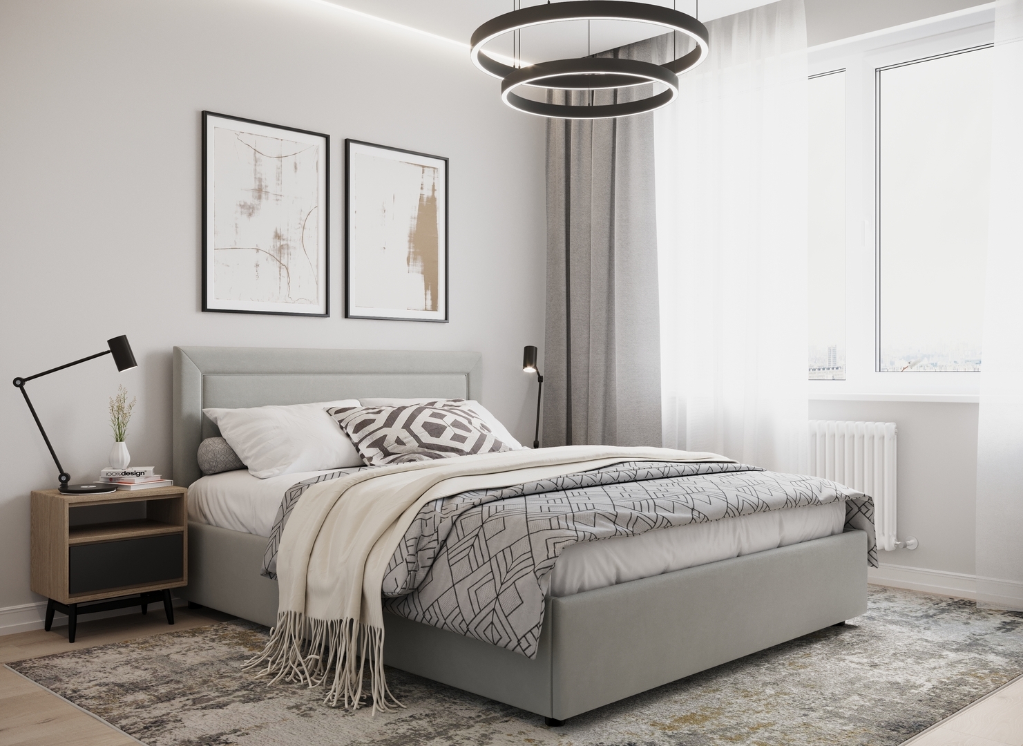 Создать гармоничный интерьер и завершить образ спальни помогут дополнительные аксессуары, например: тумбы, банкетки, подушки.