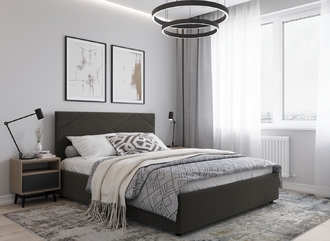 Фактура обивочного материала подбирается дизайнерами с учетом технологических и стилевых особенностей кровати.