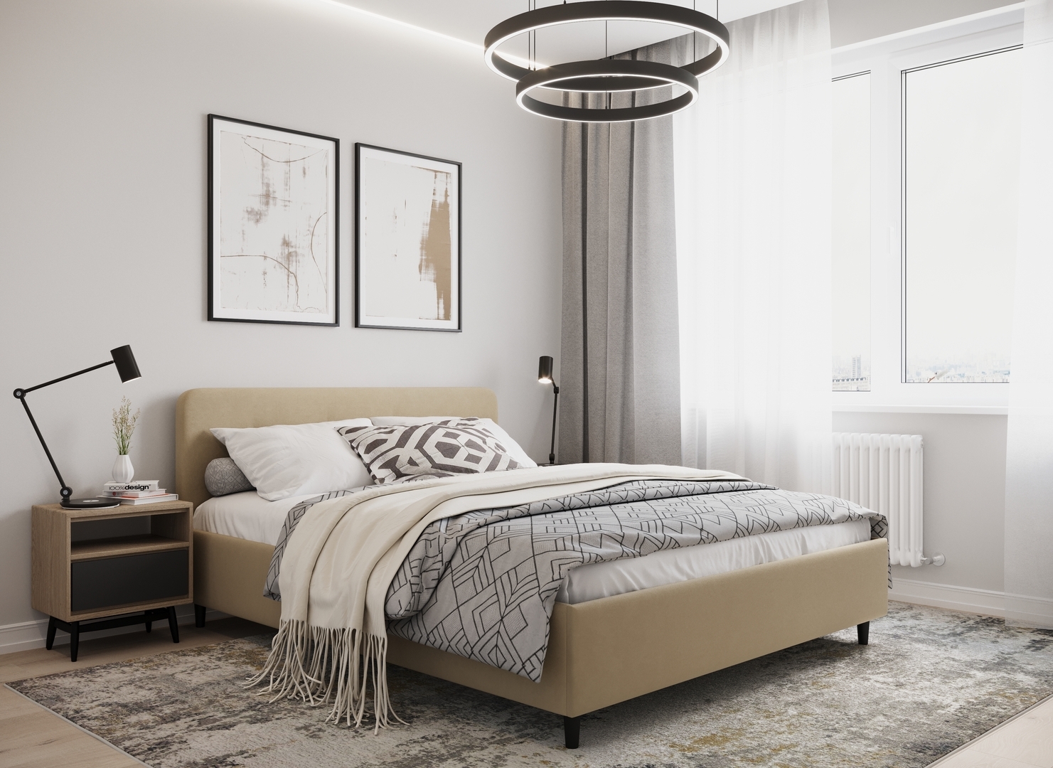 Создать гармоничный интерьер и завершить образ спальни помогут дополнительные аксессуары, например: тумбы, банкетки, подушки.