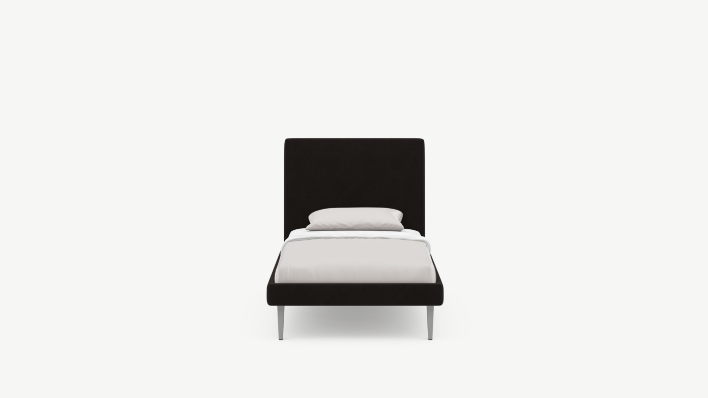 Кровать MOON FAMILY 1256 демонстрирует безупречный баланс изящных пропорций. Лаконичное изголовье, узкие царги и высокие опоры создают эффектный образ, привносящий в пространство спальни стильный и яркий акцент.