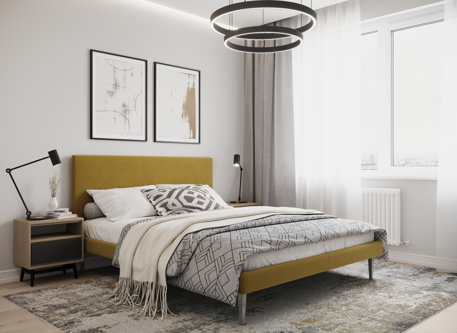 Создать гармоничный интерьер и завершить образ спальни помогут дополнительные аксессуары, например: тумбы, банкетки, подушки.