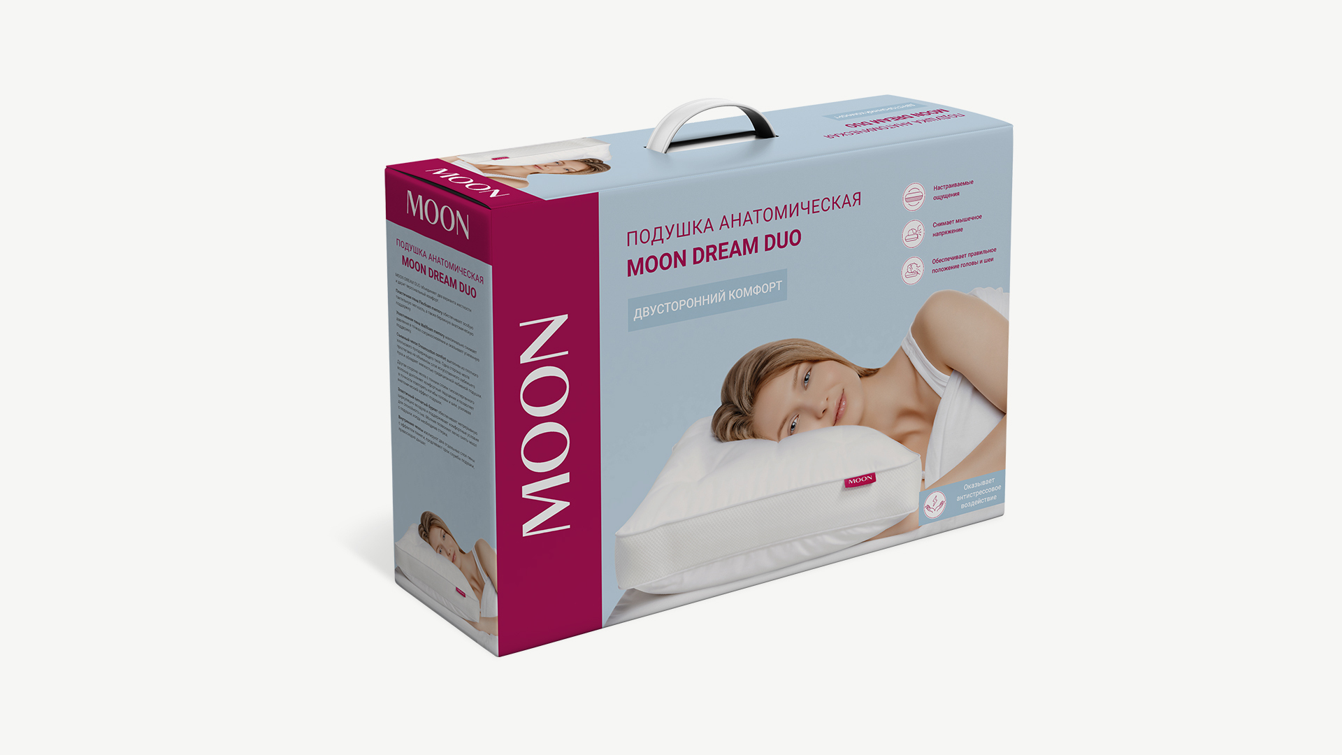 MOON DREAM DUO покорит не только поклонников анатомических подушек, но и станет отличным выбором для тех, кто хочет отказаться от привычки спать на традиционных набивных изделиях.