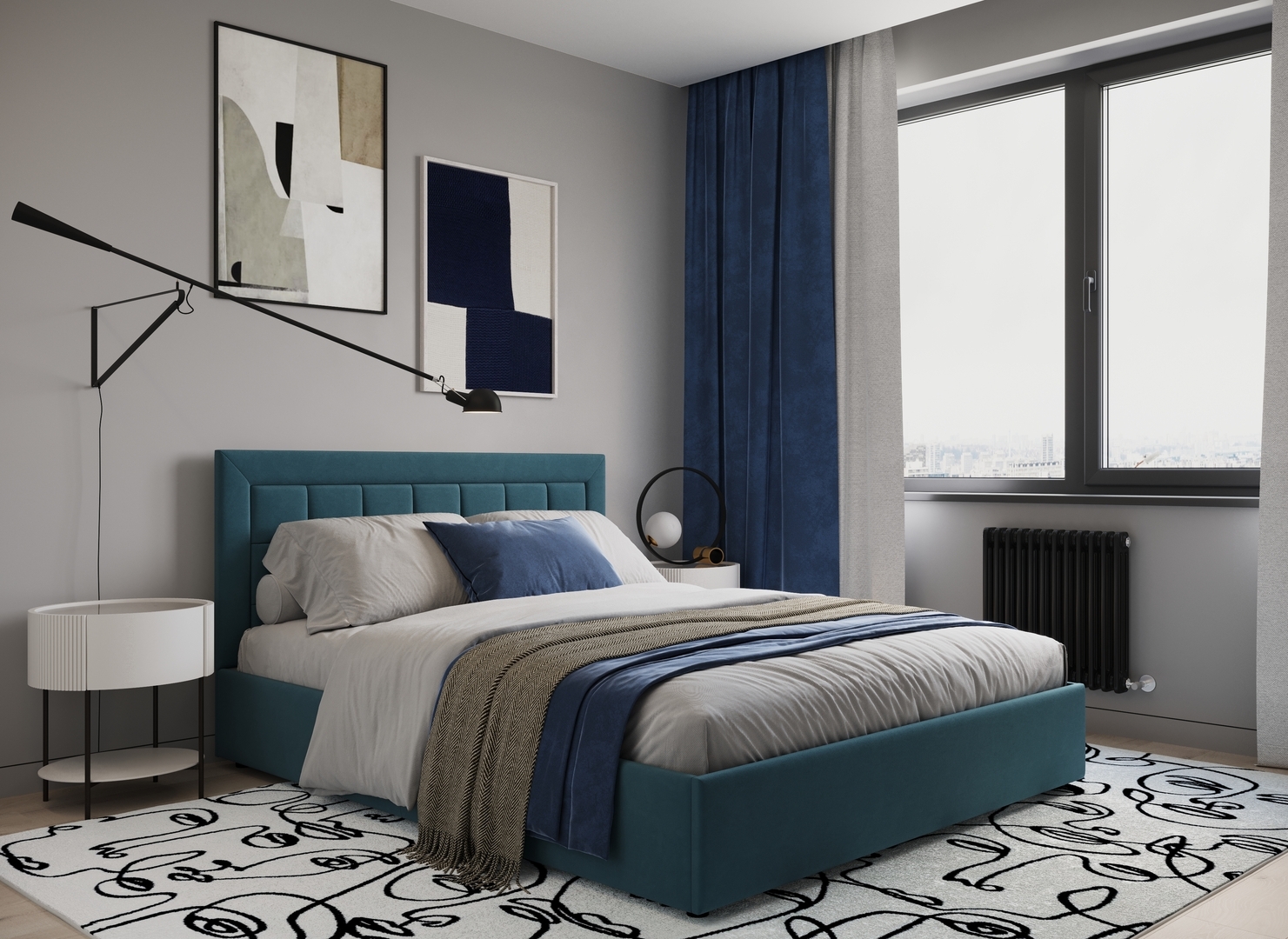 Создать гармоничный интерьер и завершить образ спальни помогут дополнительные аксессуары, например: тумбы, банкетки, подушки.