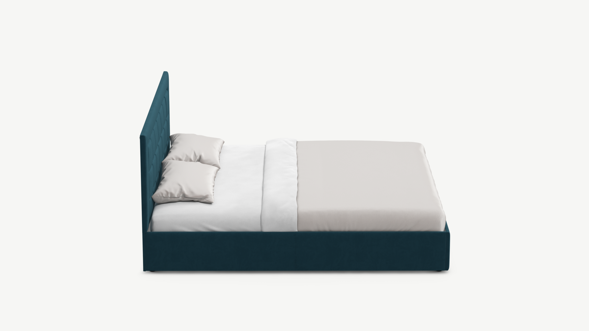 Изголовье декорировано рельефным рисунком стежки в крупный квадрат, получившим особую фактуру за счет глубины шва.