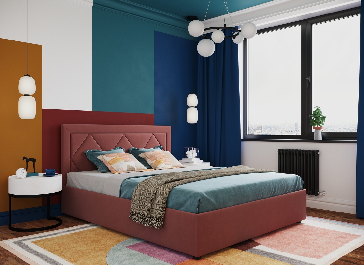 Создать гармоничный интерьер и завершить образ спальни помогут дополнительные аксессуары, например: тумбы, банкетки, подушки.