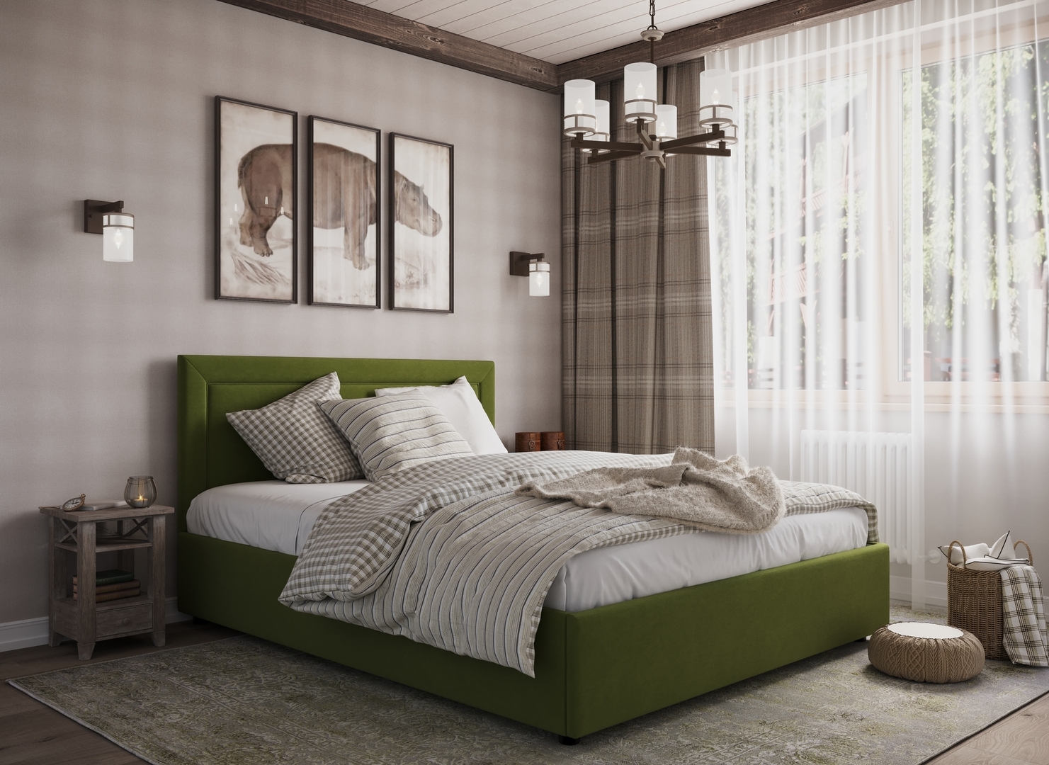 Создать гармоничный интерьер и завершить образ спальни помогут дополнительные аксессуары, например: тумбы, банкетки, подушки.