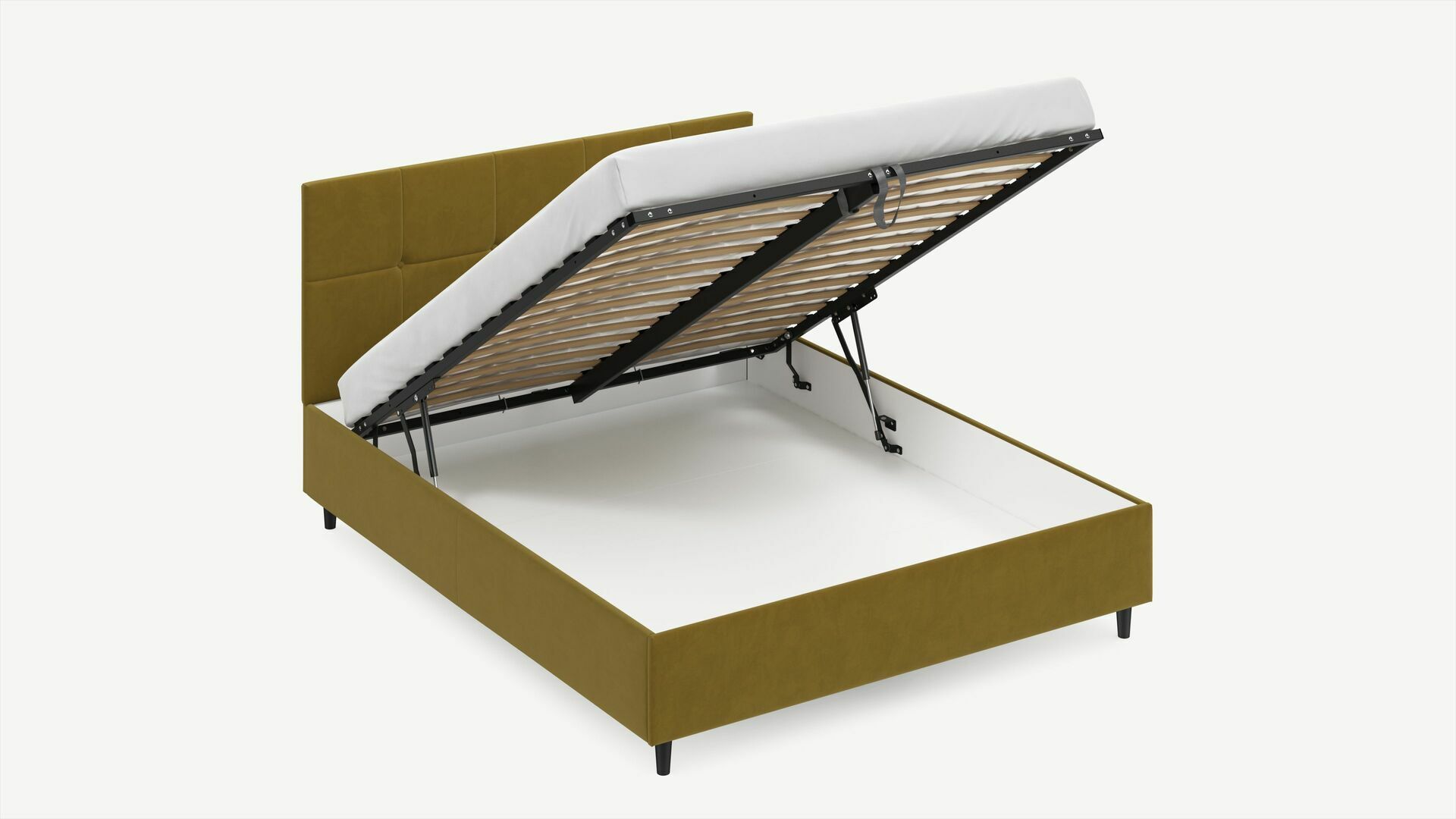 • Скрытая под основанием вместительная емкость без внутренних перегородок позволяет использовать всю площадь подкроватного пространства для хранения вещей.