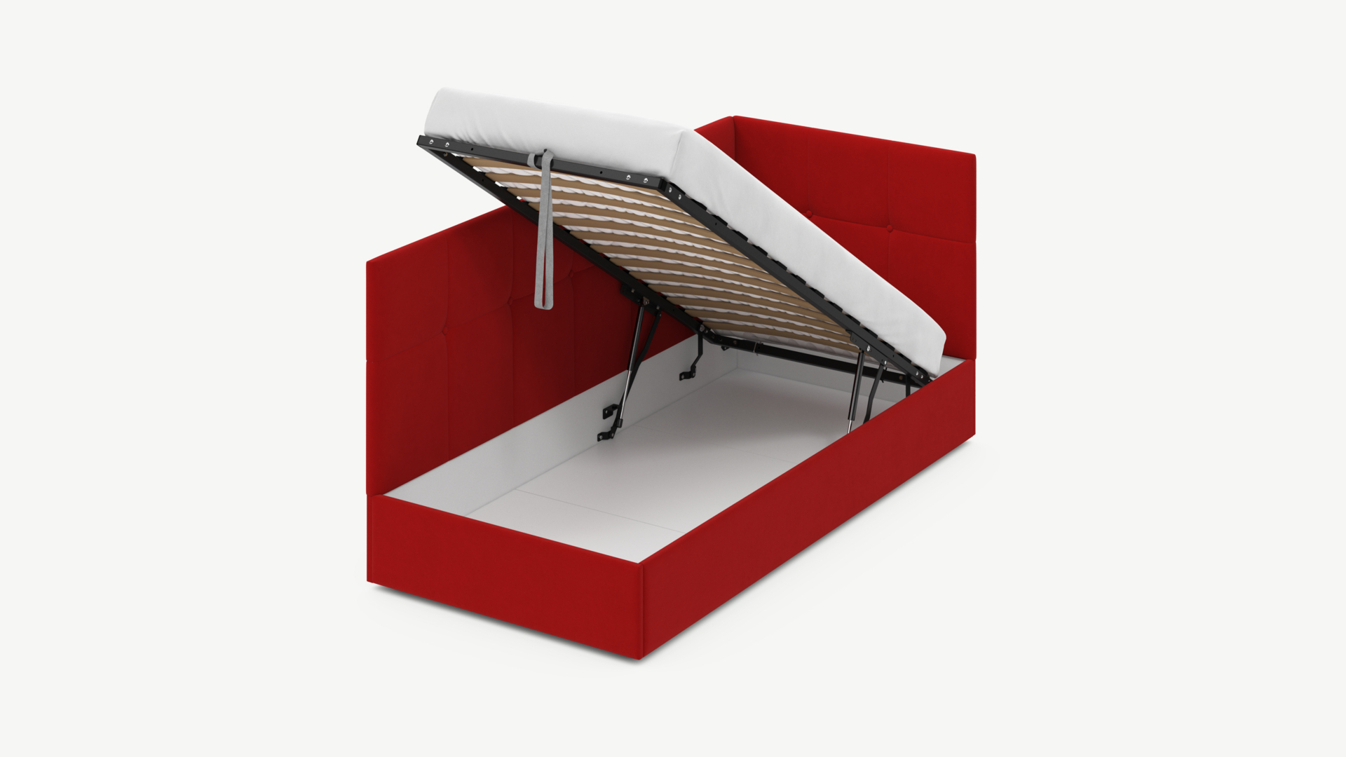 • Регулируемый подъемный механизм имеет два положения установки газовых амортизаторов в зависимости от веса матраса. Это дает возможность оптимально подстраивать угол подъема основания, а также плавно и бесшумно поднимать и опускать спальное место.