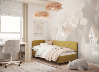 В подростковой комнате эта кровать станет стильным акцентом окружающего интерьера и возьмет на себя роль удобной кушетки для друзей, зашедших в гости.