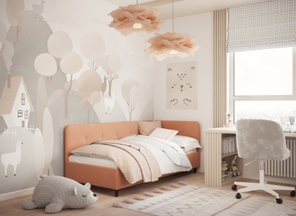 В подростковой комнате эта кровать станет стильным акцентом окружающего интерьера и возьмет на себя роль удобной кушетки для друзей, зашедших в гости.