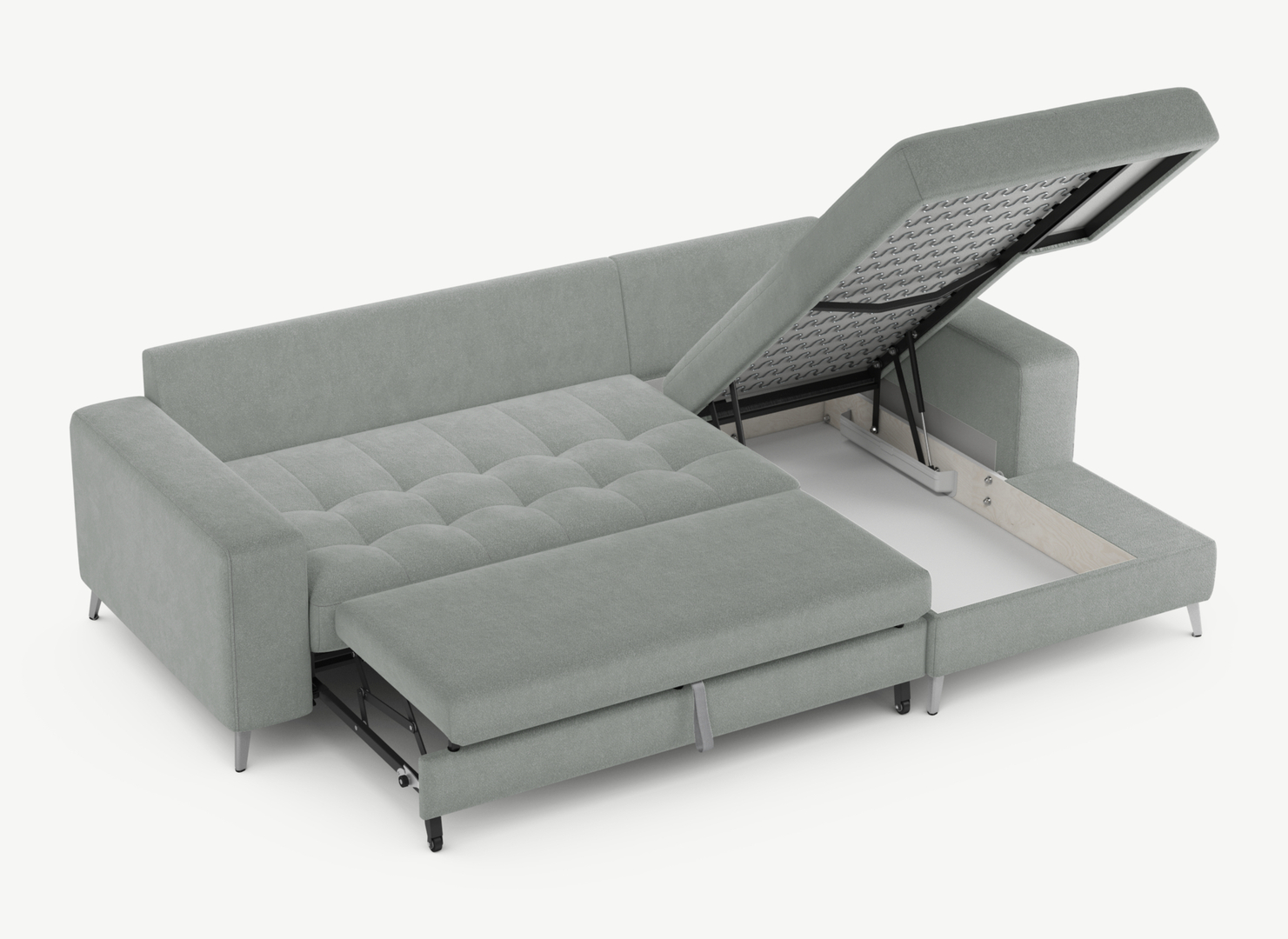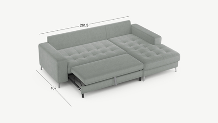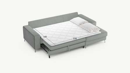 Секция «канапе» обеспечивает дополнительное пространство для отдыха, благодаря которому Вы можете располагаться с максимальным комфортом, удобно вытянув ноги. Под данной секцией расположен вместительный бельевой короб.