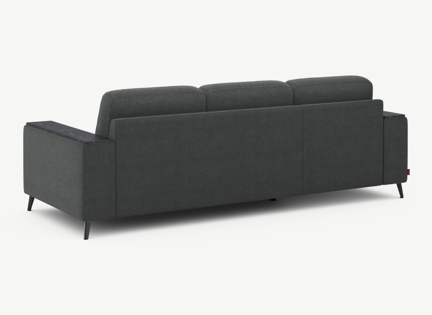 Спинка, выполненная в обивочной ткани, позволяет ставить диван в центре комнаты и зонировать пространство.