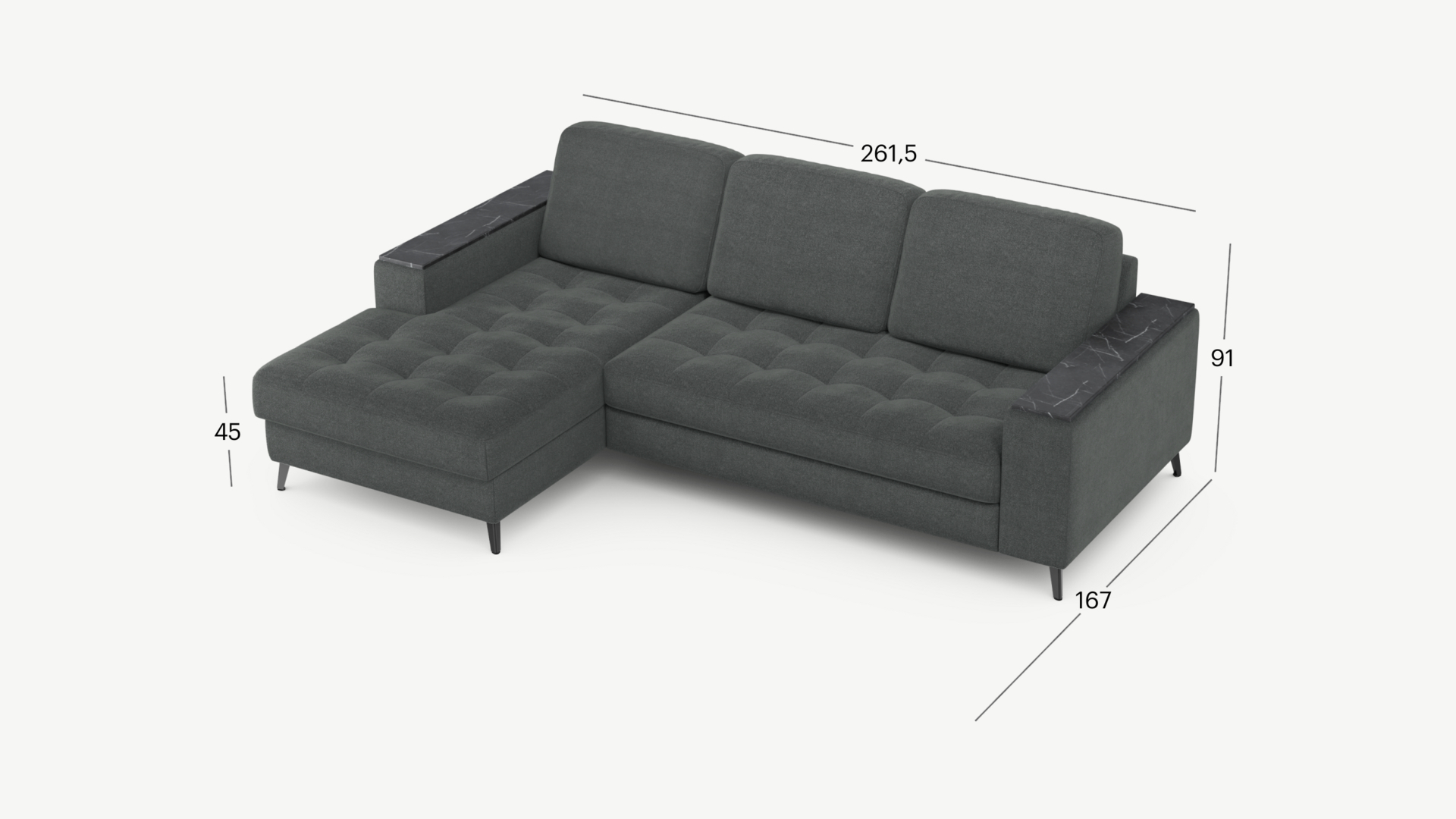 261.5x167x91 см