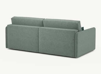 Красивый вид дивана со всех сторон. Спинка дивана, полностью облицованная обивочным материалом, придает изделию эстетичный внешний вид, завершает его образ и позволяет ставить диван в центре комнаты и/или зонировать пространство.