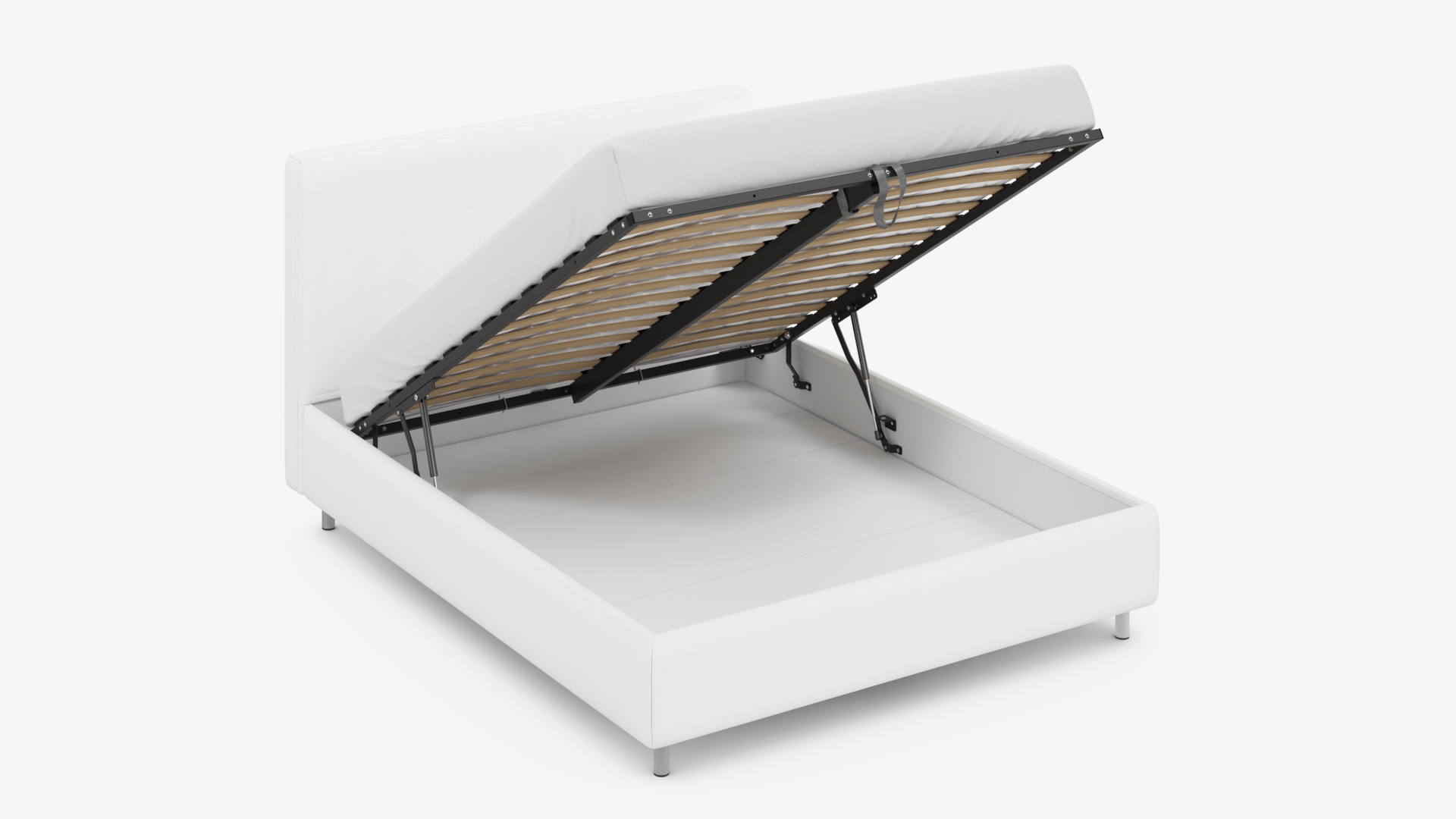 • Скрытая под основанием вместительная емкость без внутренних перегородок позволяет использовать всю площадь подкроватного пространства для хранения вещей.