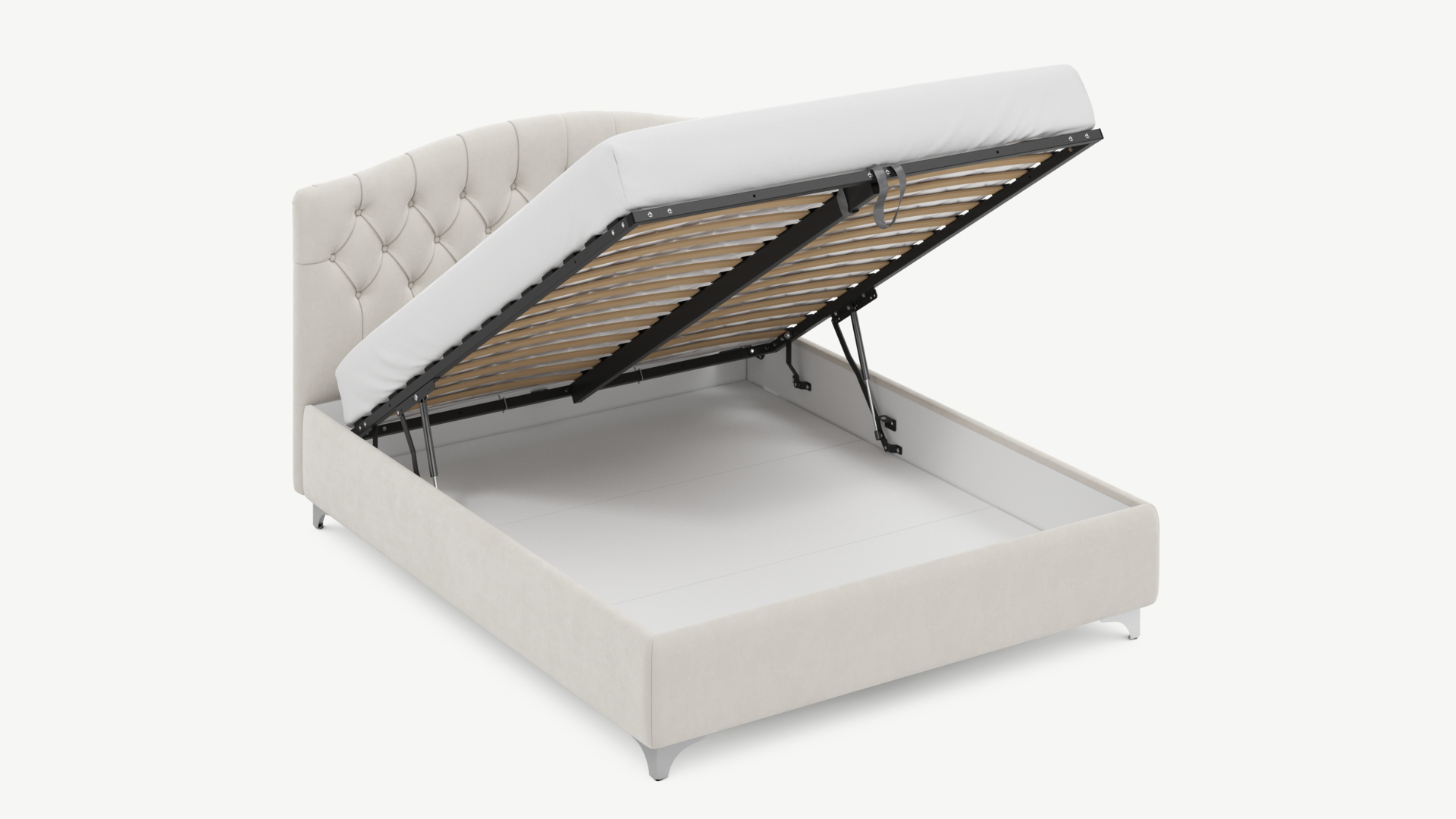 • Скрытая под основанием вместительная емкость без внутренних перегородок позволяет использовать всю площадь подкроватного пространства для хранения вещей.