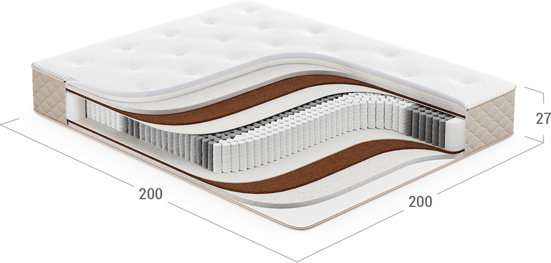 Надежно изолирует комфортные слои от соприкосновения с пружинным блоком и защищает материалы наполнения матраса от износа.