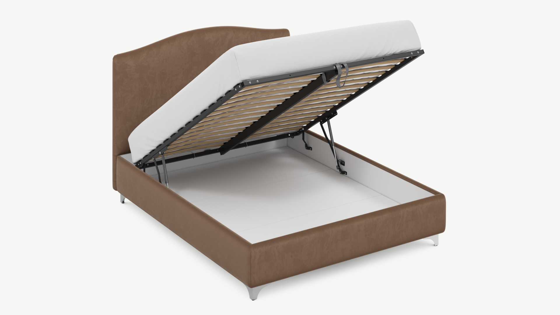 - Скрытая под основанием вместительная емкость без внутренних перегородок позволяет использовать всю площадь подкроватного пространства для хранения вещей.