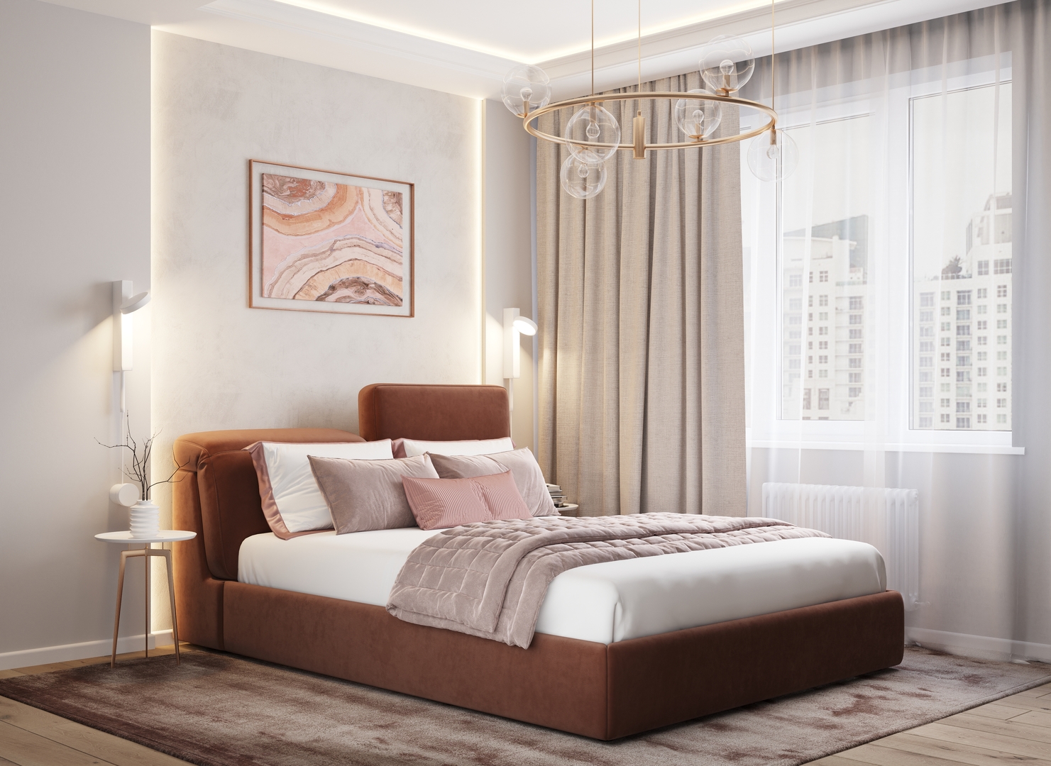 Разнообразие цветовой палитры позволит подобрать желаемый оттенок и украсить любой интерьер. Использование светлых цветов поддержит настроение стиля «Сканди». Приглушенные насыщенные оттенки оформят кровать в стиле «Лофт». Нейтральные оттенки в цвет интерьера обыграют спальню в Современном стиле.