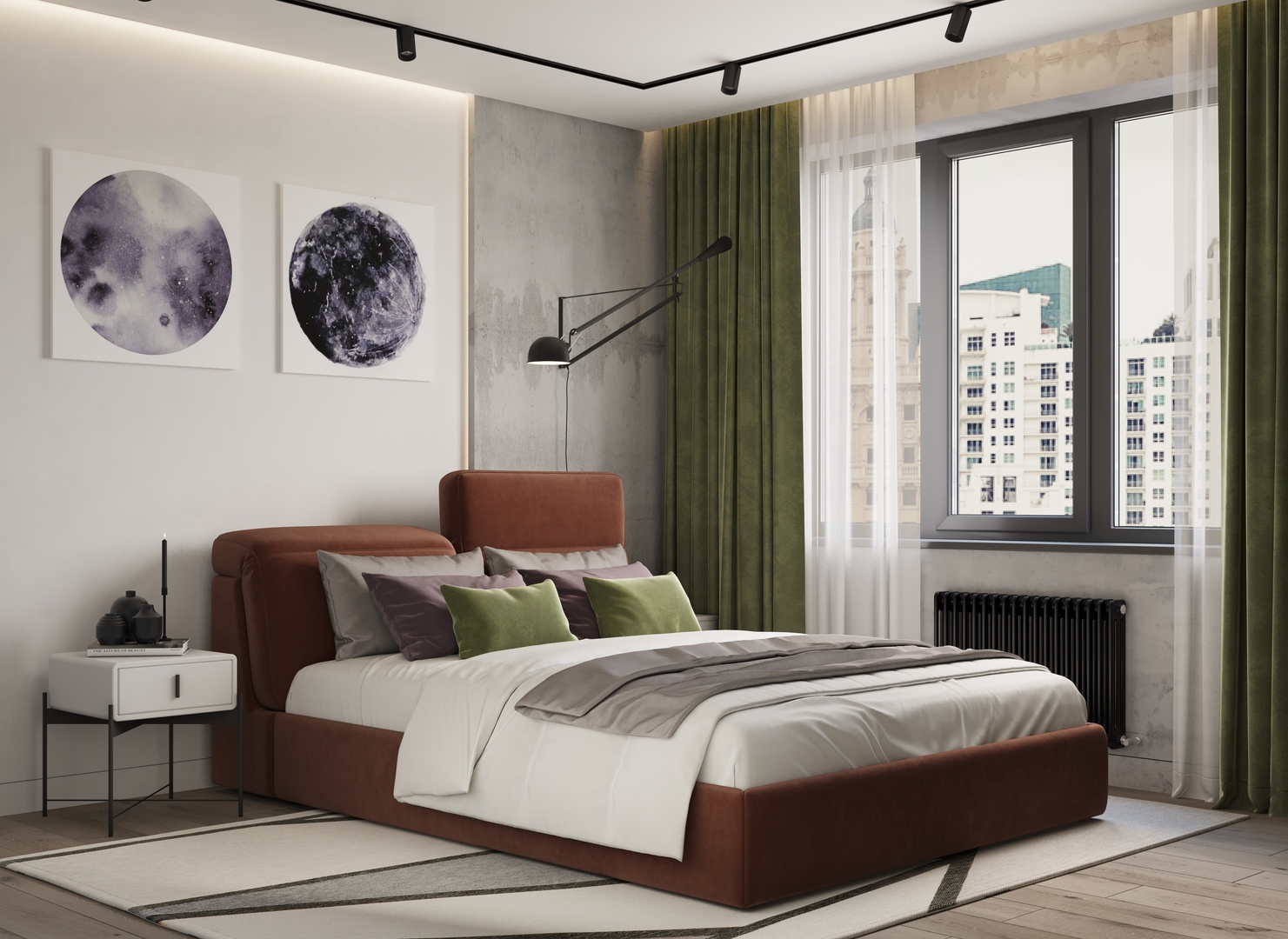 Для оформления кровати наши дизайнеры рекомендуют однотонный велюр, который придает MOON 1107 элегантную утонченность.