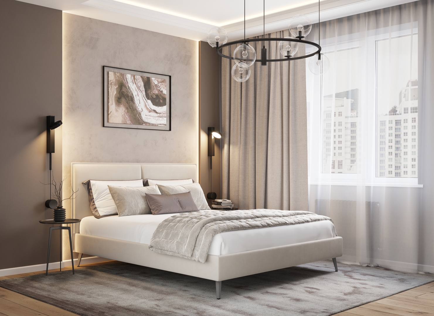 Оформите образ кровати, выбирая обивочный материал, который подчеркнет стиль Вашей спальни и отразит Ваш вкус. Использование светлых цветов поддержит настроение стиля «Сканди». Нейтральные оттенки в цвет интерьера обыграют спальню в Современном стиле.