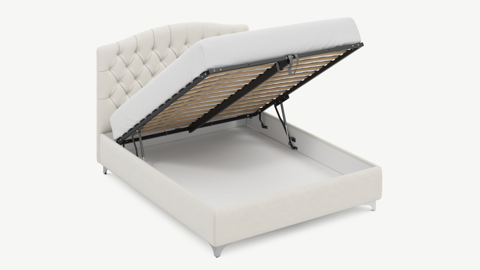 • Скрытая под основанием вместительная емкость без внутренних перегородок позволяет использовать всю площадь подкроватного пространства для хранения вещей.